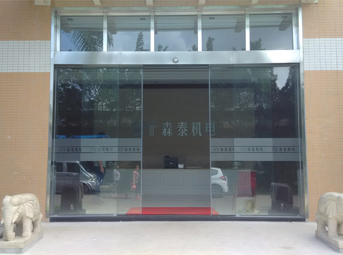 中山市森泰机电有限公司平移自动门与众多自动门工程不同的是,该公司要求有一个雨棚,根据客户要求,我们利用槽钢和玻璃为客户建造了一个完美的雨棚,该自动门也是感应式自动门,和其他感应自动门功能一样!