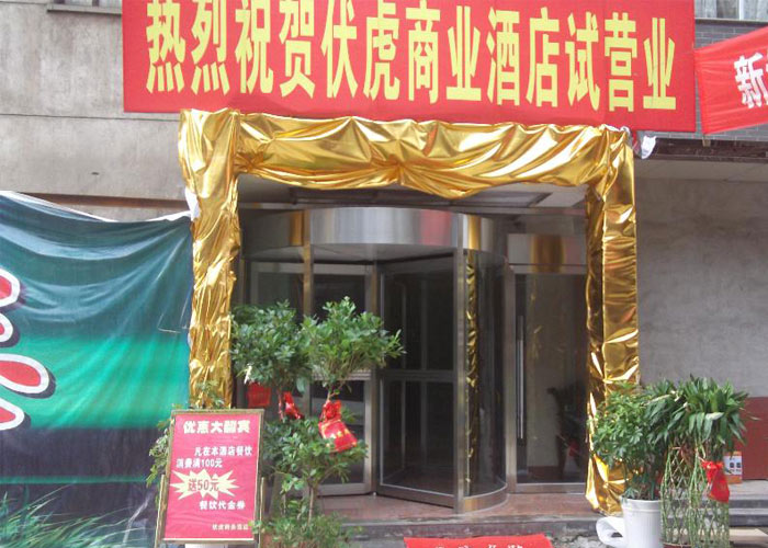 伏虎商务酒店选用三翼旋转门,选用银色作为主色调,是因为银色可以和楼体颜色想融合!透明钢化玻璃,门体精挑细琢;将酒店的豪华显示的淋漓尽致。