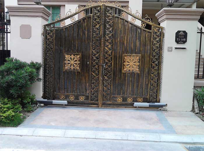 在铁艺别墅大门上安装机电开门机,无疑是在豪华上加了档次!重要的是,你再也无需用手去推那比较厚重的门,况且,机电开门机属于无轨运行,不用考虑地面情况,也不会对地面造成影响,你可以铺上你喜欢的鹅卵石!