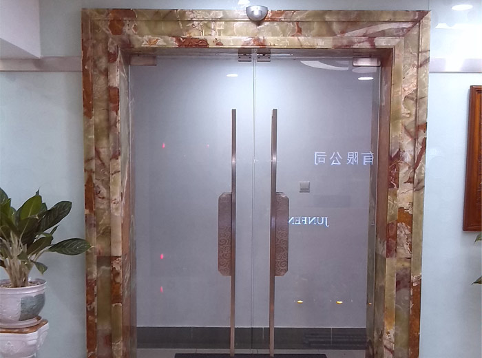珠海俊丰装饰有限公司地弹簧门的需求是把在地弹簧门上装上感应器,要求可以人在感应区时,门可以自动打开,并要求在停电的时候,门可以变成普通的地弹簧门,实现手动开门!下面是案例图片: