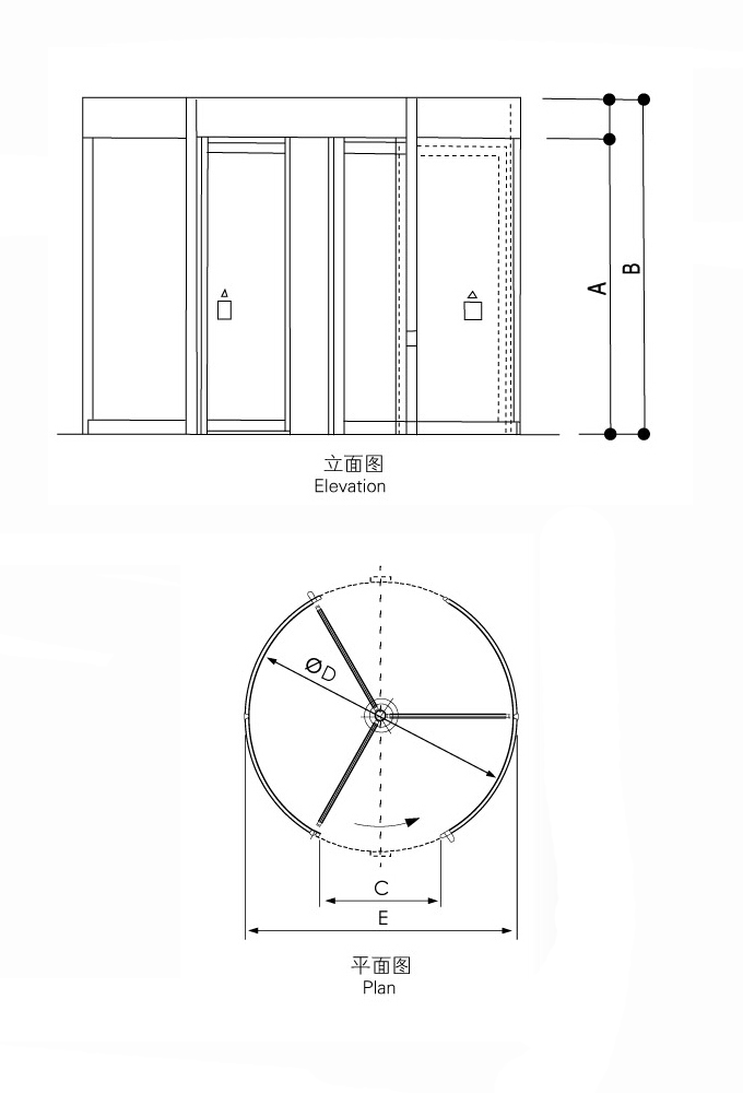 锁门状态:夜间或旋转门停止工作时,把旋转门设置成此状态。
